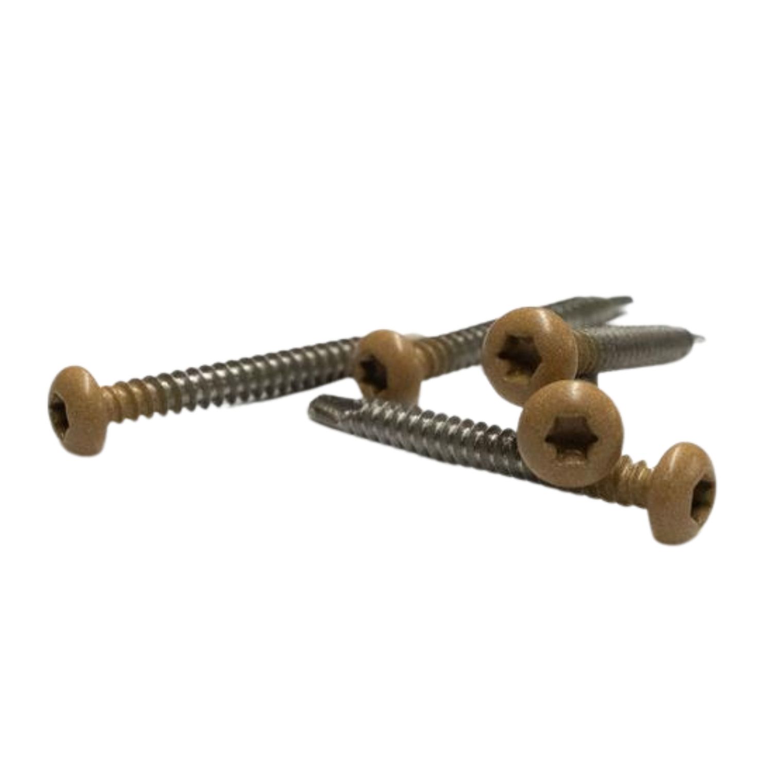 NewTechWood  zelfborende wand/gevel-schroeven in de kleur Red Cedar . De schroeven zijn gemaakt uit duurzaam RVS en zorgen voor optimale bevestiging van de Castellation PRO Rhombus wandprofielen.