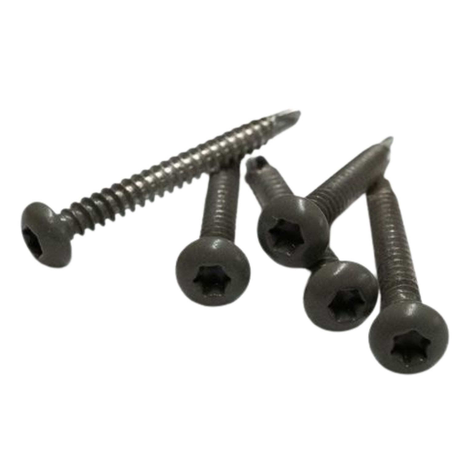NewTechWood  zelfborende wand/gevel-schroeven in de kleur Silver Gray . De schroeven zijn gemaakt uit duurzaam RVS en zorgen voor optimale bevestiging van de Castellation PRO Rhombus wandprofielen.